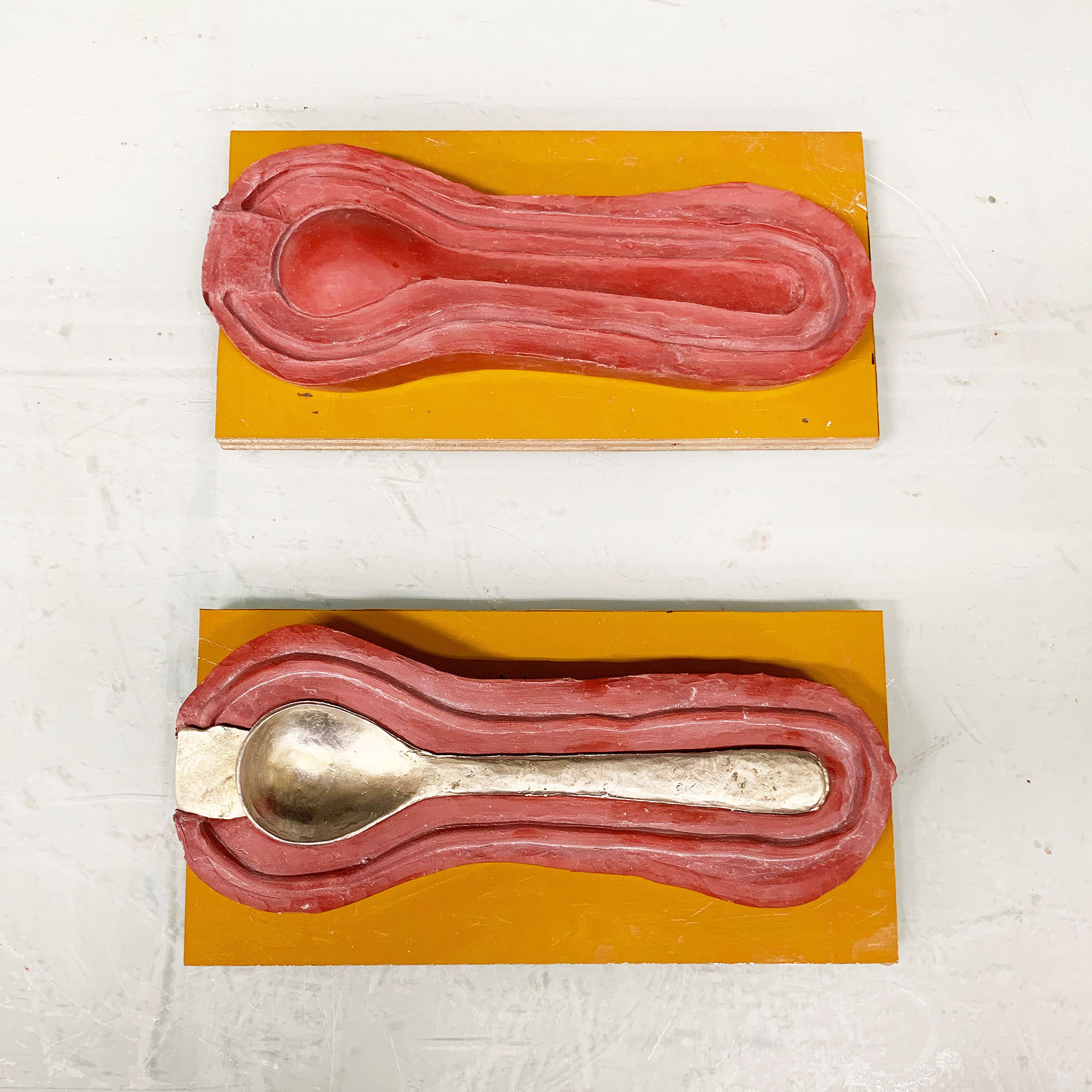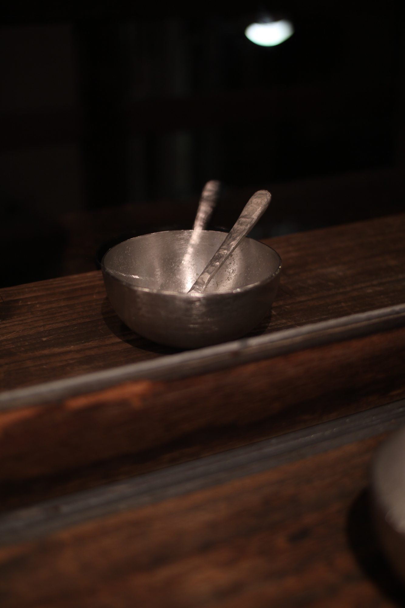 夜、そのスプーンははっきり2本になり、外側と内側にボウルとスプーンが置かれていることは分からなくなる。まるで外側には何も置かれていないように見える。